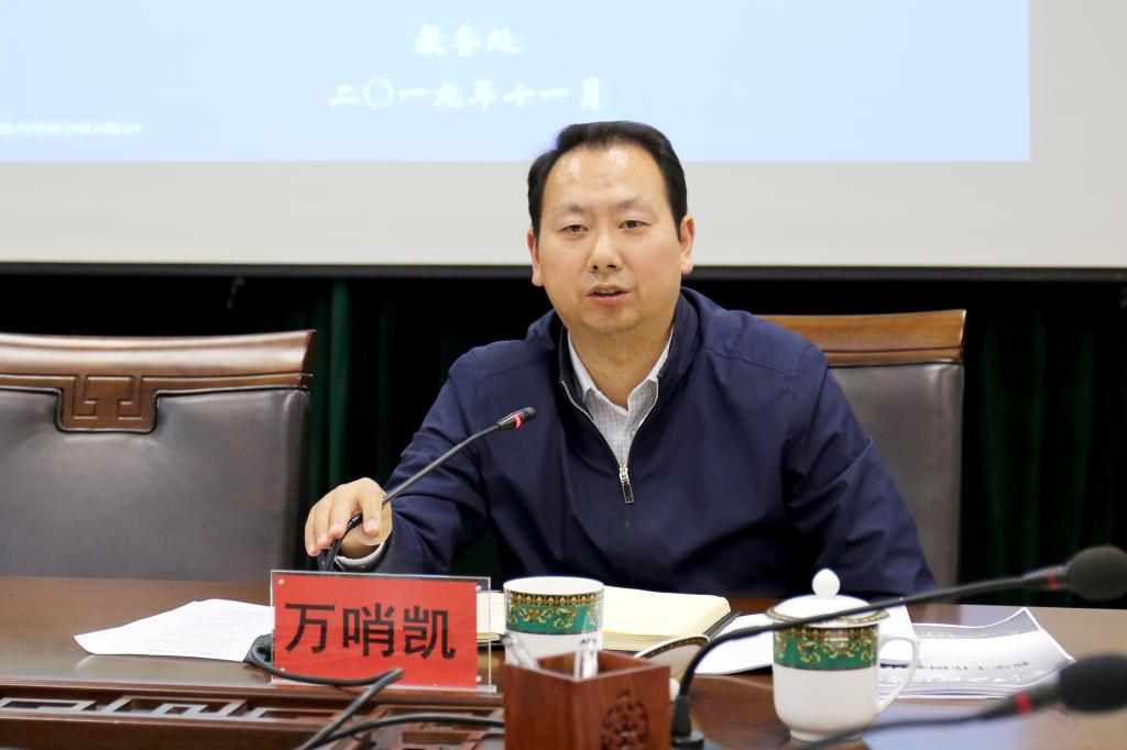 万哨凯指出,学校的教学工作要深入贯彻教育部下发的《关于深化本科教育教学改革全面提高人才培养质量的意见》等相关文件精神,围绕提高教育教学水平这一核心工作,抓常规、推改革、提质量。他强调,各教学单位在抓好人才培养质量这个根本性工作时,要做好“五个立足、五个提升”:一是要立足课堂教学,全面提升课程教学质量。课堂教学必须严抓,淘汰水课,打造线下、线上、混合式等各类金课;二是要立足产教融合,全面增强学生实践能力。着力打造合作范围广、具有一定深度的代表性企业;三是要立足过程管理,全面加强人才培养质量。通过过程管理,倒逼人才培养质量不断提高,要让教学管理严起来、实起来;四是要立足本科教育,全面提升本科教育质量。要准确把握国家政策,在广大师生中宣传到位,推动学生转变观念,不断优化学风班风校风;五是要立足质量监控体系,全面提升教学质量实效。利用教学评价有效掌握教学情况,保障教学有序进行。