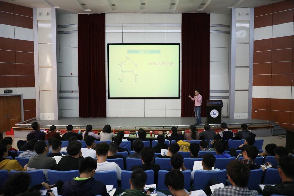 江科网讯(记者 李倩)11月4日下午,督导处在报告厅B厅组织开展公开课教学活动。机械工程学院教师周细林以“机械设计基础——自由度计算”为授课内容,讲授了一堂深入浅出的公开课。熊爱民顾问出席。督导处处长周青、信息工程学院院长王涛涛和部分专兼职督导员参加了听课、评课。