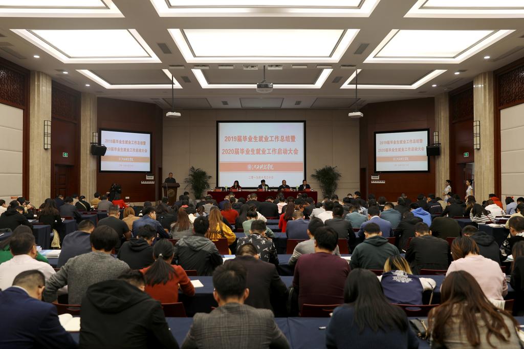 闵桂林作2019届毕业生就业工作总结。他指出,在校领导高度重视、招就处大力推进、全校上下通力协作下,2019年就业工作继续保持良好发展态势。2020年毕业生就业工作要强化政治站位,把握就业高度;强化组织领导,多部门协同推进;强化就业宣传,精准掌握政策;强化就业教育,孵化自主创业;强化创新驱动,提高就业创业竞争力。