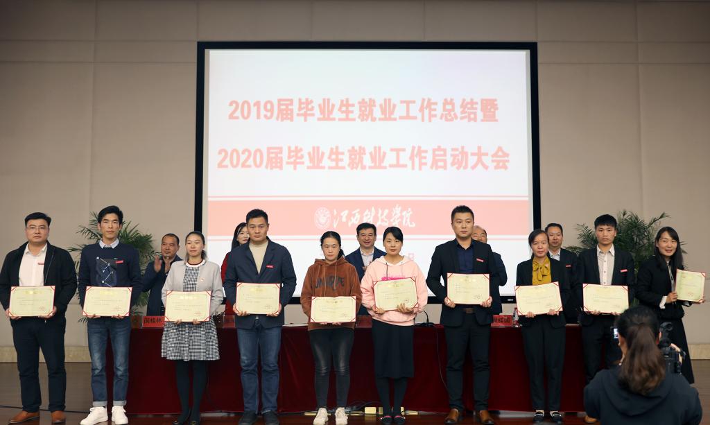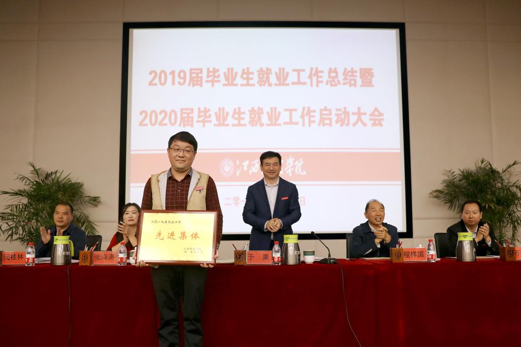 程样国宣读了关于表彰2019届毕业生就业工作先进集体及先进个人的决定。校领导为获奖集体和个人颁奖。