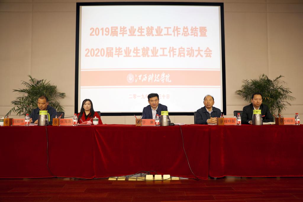 江科网讯(记者 何强江)10月30日下午,我校在行政南楼第一会议室召开2019届毕业生就业工作总结暨2020届毕业生就业工作启动大会。董事长于果,校党委书记程样国,校长张海涛,副校长万哨凯,副书记、副校长闵桂林出席。会议由张海涛主持。