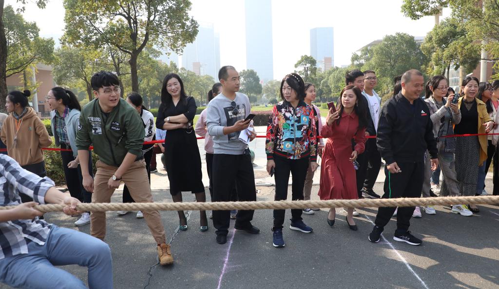 江科网讯(记者 李玉云)“一二,一二……”“加油,加油……”“赢啦赢啦……耶……”呐喊声、加油声、欢呼声从临水广场传来。10月22日至10月24日,我校举行第二十届运动会教职工拔河比赛。校长张海涛,副校长、工会主席林素君,党委副书记、副校长闵桂林到现场观看比赛,并为选手加油助威。
