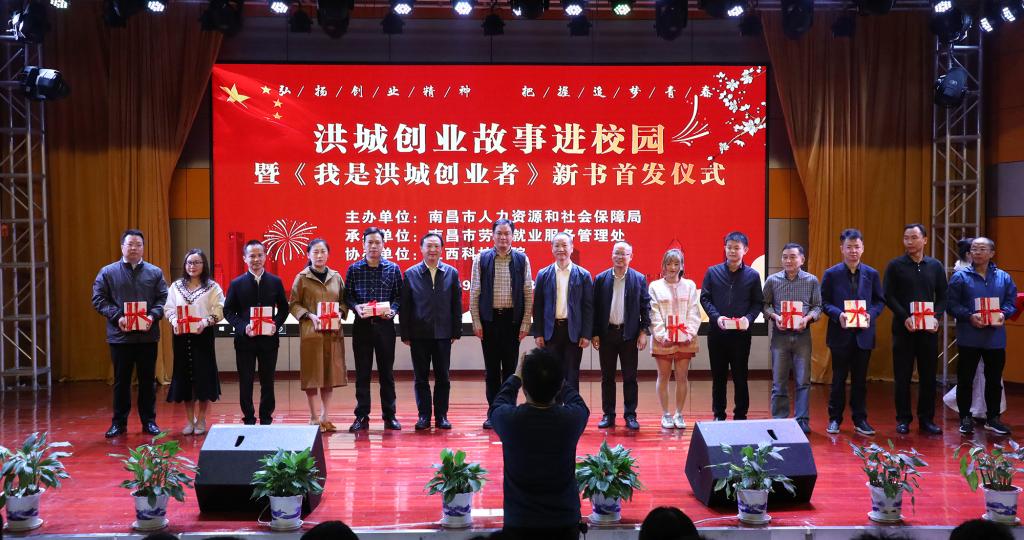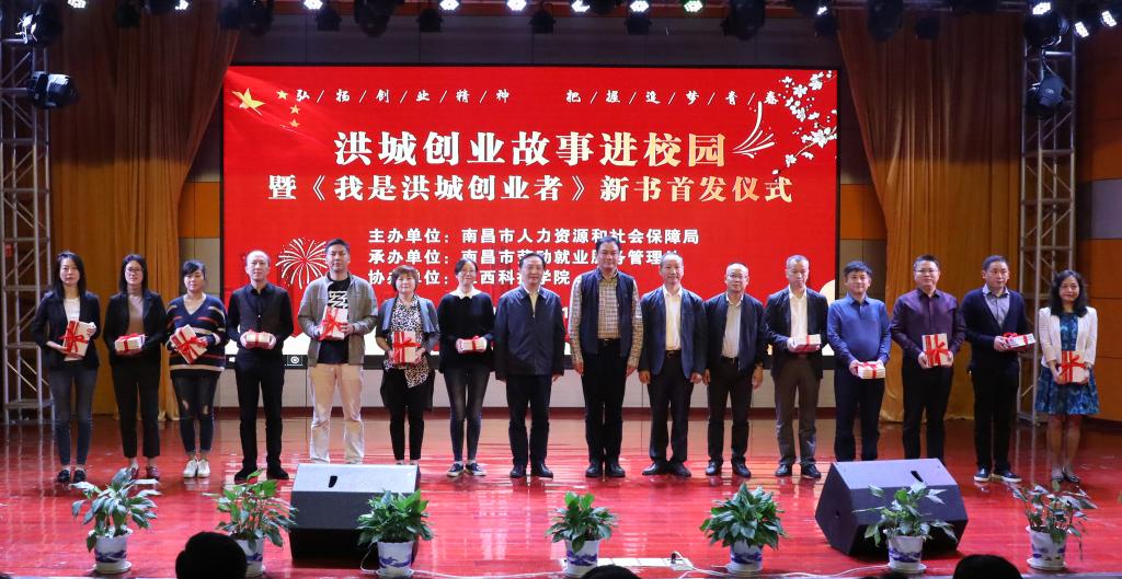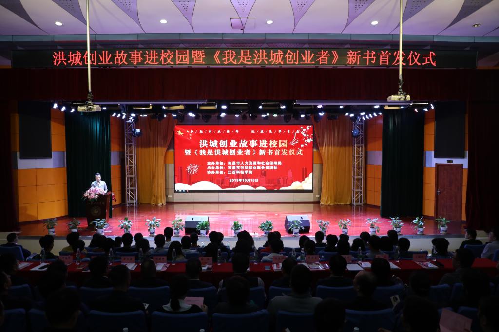 江科网讯(记者 李玉云)10月18日上午,洪城创业故事走进江西科技学院,《我是洪城创业者》新书首发仪式在我校报告厅C厅举行。该活动由南昌市人力资源和社会保障局主办,南昌市劳动就业服务管理处承办,我校协办。南昌市委组织部副部长、市人社局党委书记、局长黄小华,南昌市委主题教育第九指导组组长程敏,南昌市人力资源和社会保障局党委委员、副局长李更生,我校党委副书记、副校长闵桂林,南昌市劳动就业服务管理处处长刘晓锋出席活动。各县区人社局局长、就业局局长,部分技工学校、创业培训机构主要负责人,部分“2018洪城创业故事汇”获奖选手,《我是洪城创业者》一书采编团队以及高校学生代表等参加了活动。