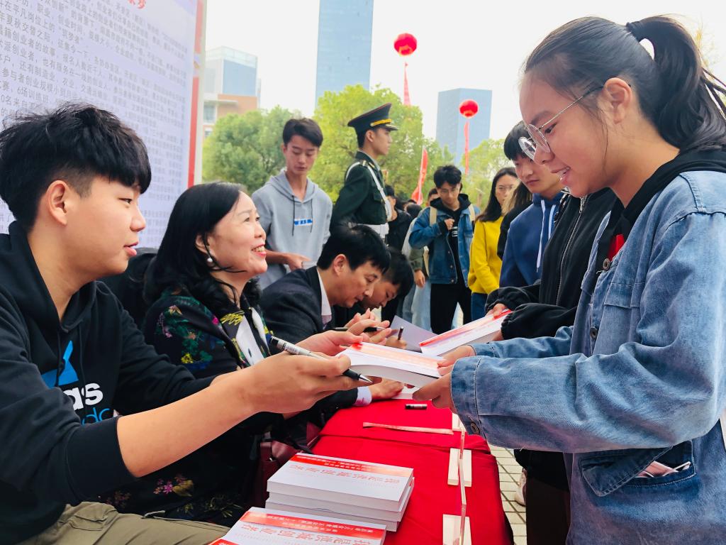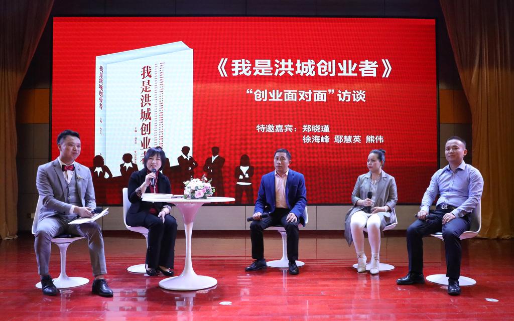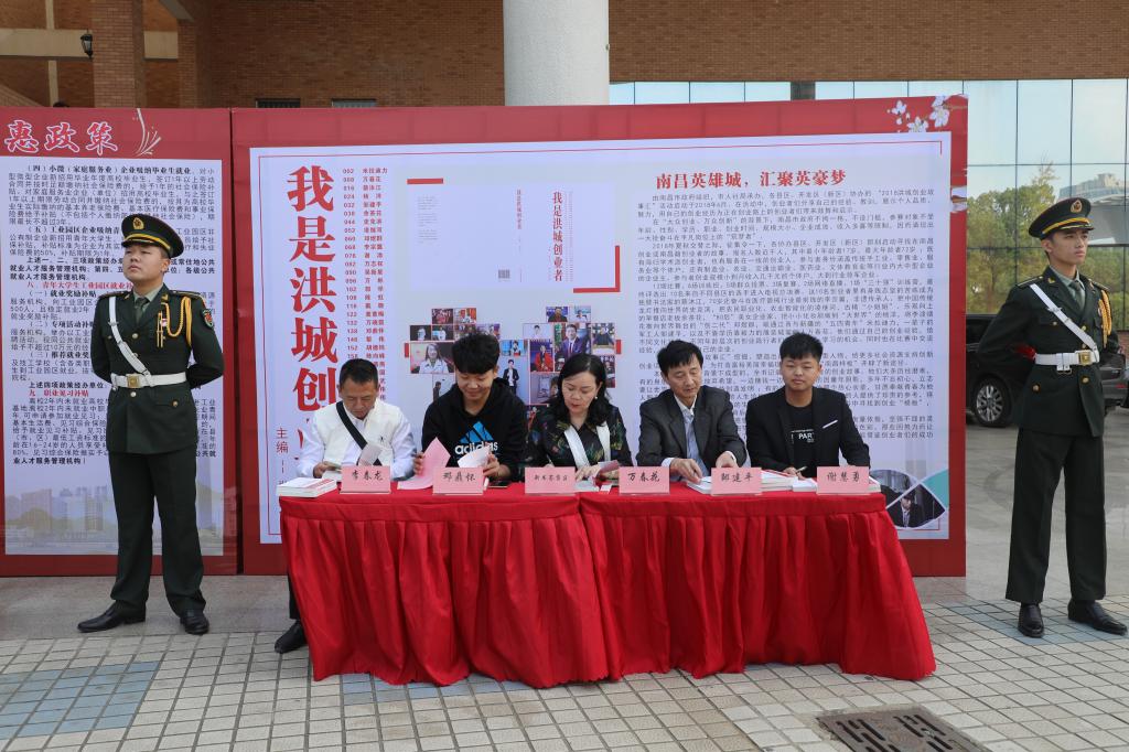 报告厅C厅外,五名“2018洪城创业故事汇”获奖选手组成嘉宾团在现场签售新书。