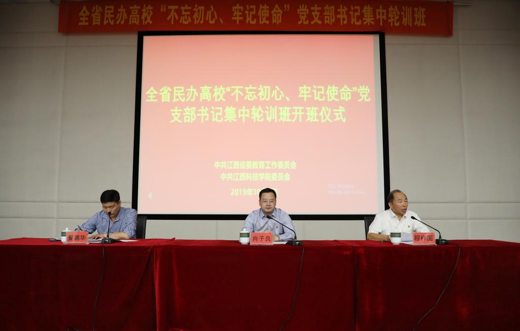 肖子良在讲话中指出,此次集中轮训班的主要任务是认真学习贯彻习近平新时代中国特色社会主义思想,习近平总书记关于开展“不忘初心、牢记使命”主题教育的重要论述,党章、党规,习近平总书记视察江西重要讲话精神等,进一步提升民办高校基层党支部书记政治理论素质、党建业务水平、履职尽责能力,确保民办高校主题教育取得实效,推动民办高校基层党建工作上台阶上水平,为办好人民满意的民办高等教育提供更加有力的组织保证。他强调,开展集中轮训是中央和省委的部署要求,是加强民办高校党建工作的现实需要,是提高基层党支部书记能力素质的必然要求。他要求各位党支部书记履职尽责,推进主题教育扎实开展。坚决落实中央和省委的部署要求,在推进主题教育四项重点措施过程中,突出民办教育特点,彰显民办高校特色,确保民办高校主题教育既对标对表又结合实际、精准发力、走深走实,做到学习教育要彰显教育特色、调查研究要立足学校实际、检视问题要强化责任担当、整改落实要注重工作实效。他同时希望大家珍惜学习机会,确保培训效果,端正学习态度,严守培训纪律,加强沟通交流,做好服务保障,把学习的收获转化为谋划工作的思路、促进发展的举措,不断推进各项工作再上新台阶。