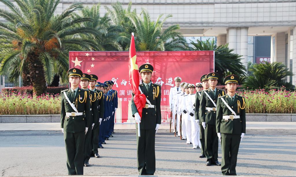上午8时,庆祝新中国成立70周年升旗仪式正式开始。迎着朝阳,国旗护卫队员迈着矫健的步伐护卫五星红旗入场。江科师生怀着激动的心情向冉冉升起的五星红旗行注目礼。学生代表在国旗下讲话,号召广大学子不忘初心,继续前行,为祖国建设贡献自己的力量。最后,全场师生齐声高唱《歌唱祖国》,用激昂的歌声向祖国母亲献上诚挚的祝福!