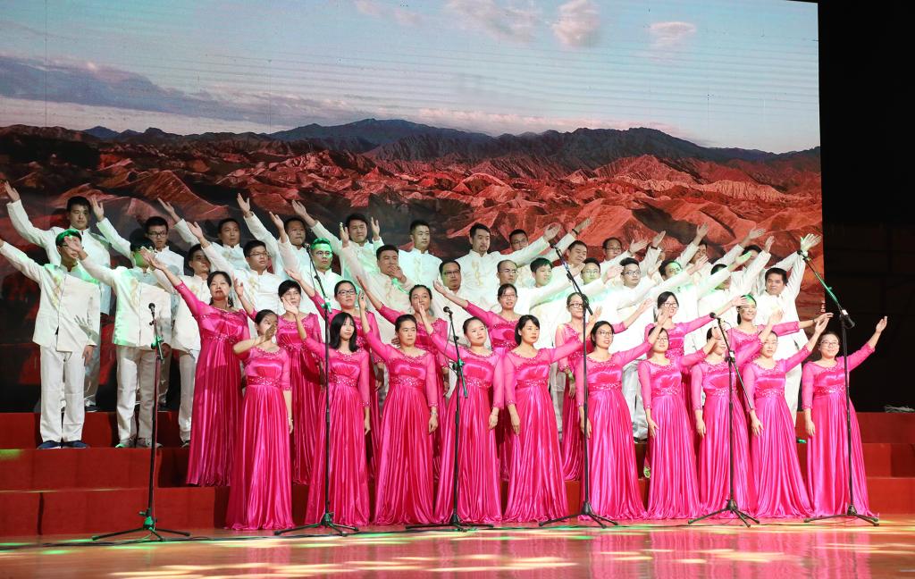 “不忘初心,继续前进;万水千山,最美中国道路……”“我和我的祖国,一刻也不能分割……”“长江黄河欢腾着,欢腾着深情,我们对您的深情……”“祝福你我的祖国,我把壮丽的青春献给你,愿你永远年轻,永远快乐……”“迎风飘扬的旗我们跟着你,跟着你就是跟着信仰坚定不移……”14支教职工合唱团分别为大家带来了《在灿烂的阳光下》、《我们走在大路上》、《红色娘子军》、《大海啊故乡》、《同一首歌》、《游击队之歌》、《今天是你的生日》、《团结就是力量》、《祝福祖国》、《春天的故事》、《迎风飘扬的旗》、《祖国慈祥的母亲》、《不忘初心》、《我和我的祖国》等歌曲。