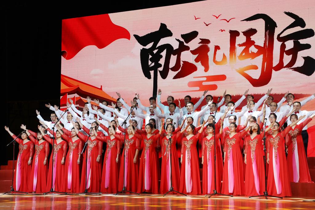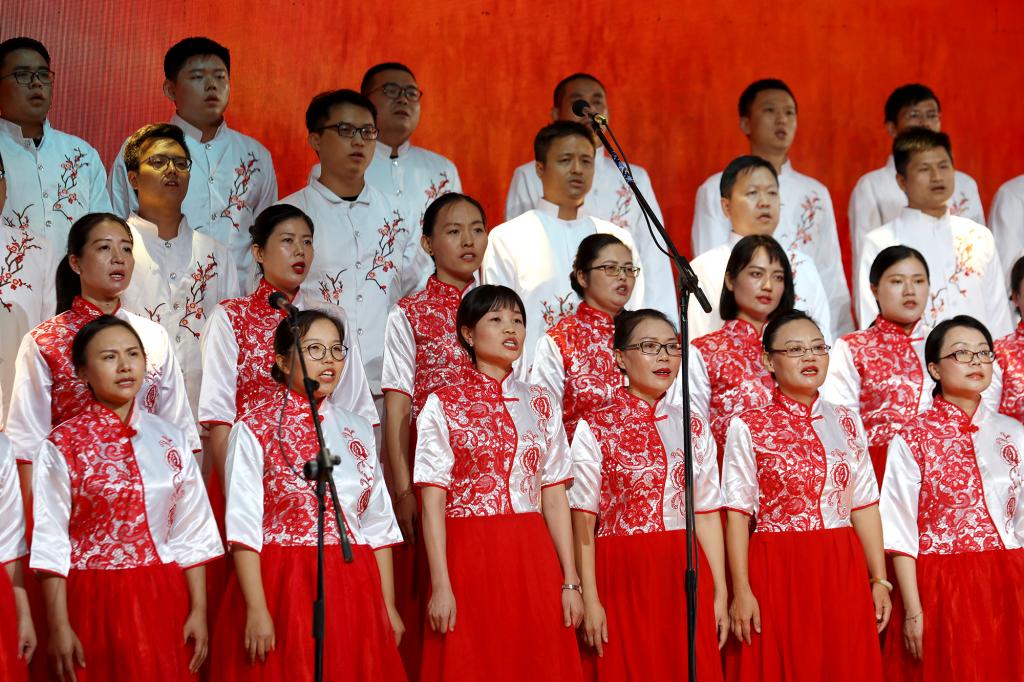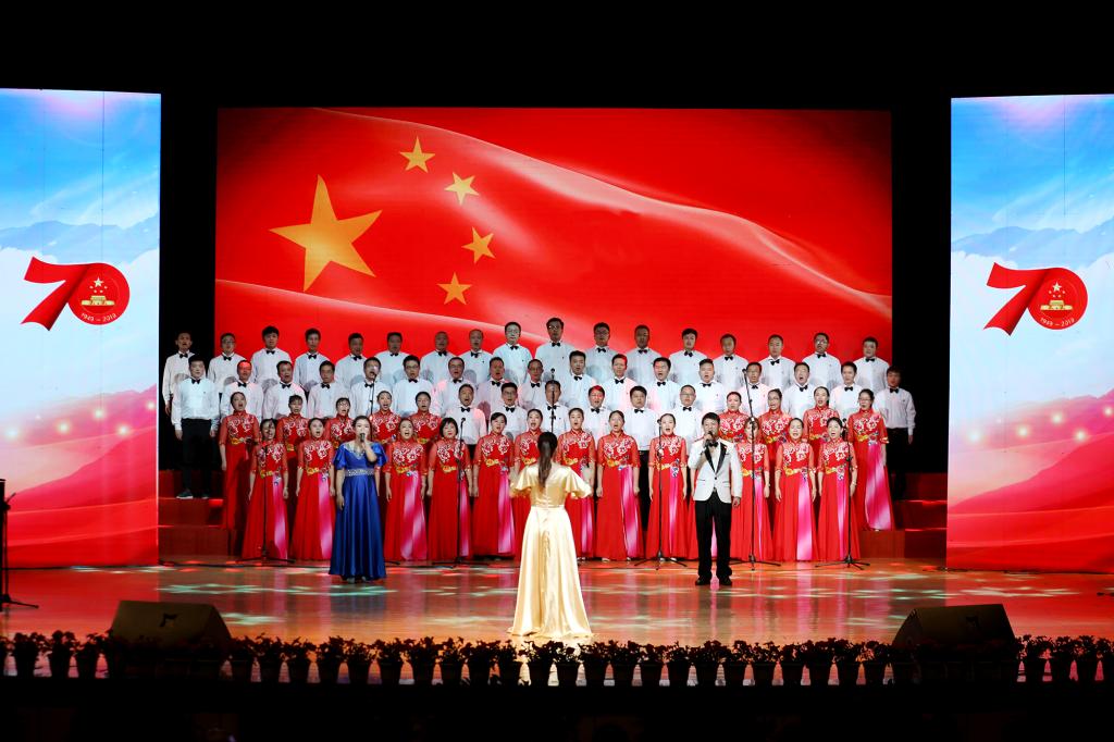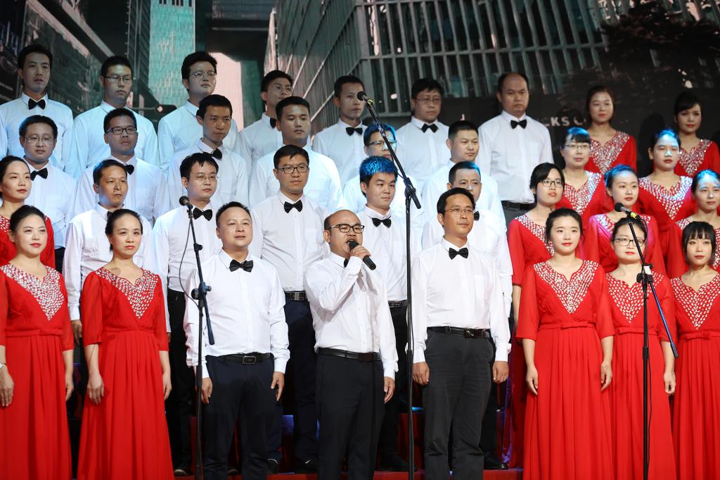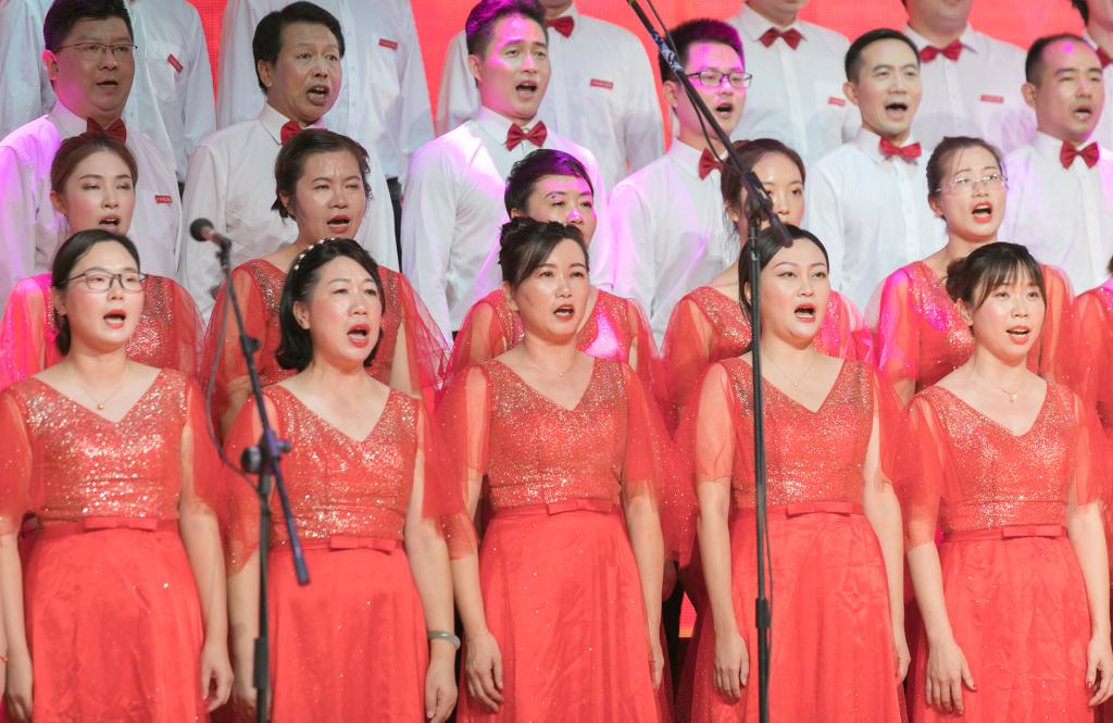 “五星红旗迎风飘扬,胜利歌声多么响亮……”大合唱比赛在全场同唱《歌唱祖国》的豪迈歌声中圆满落下帷幕。