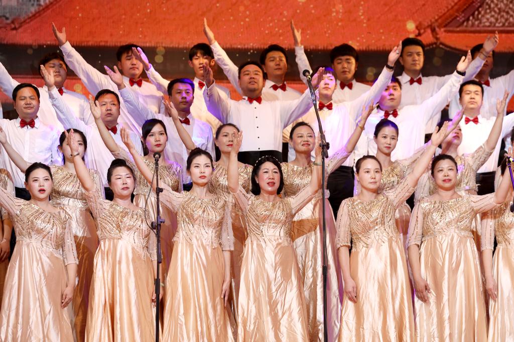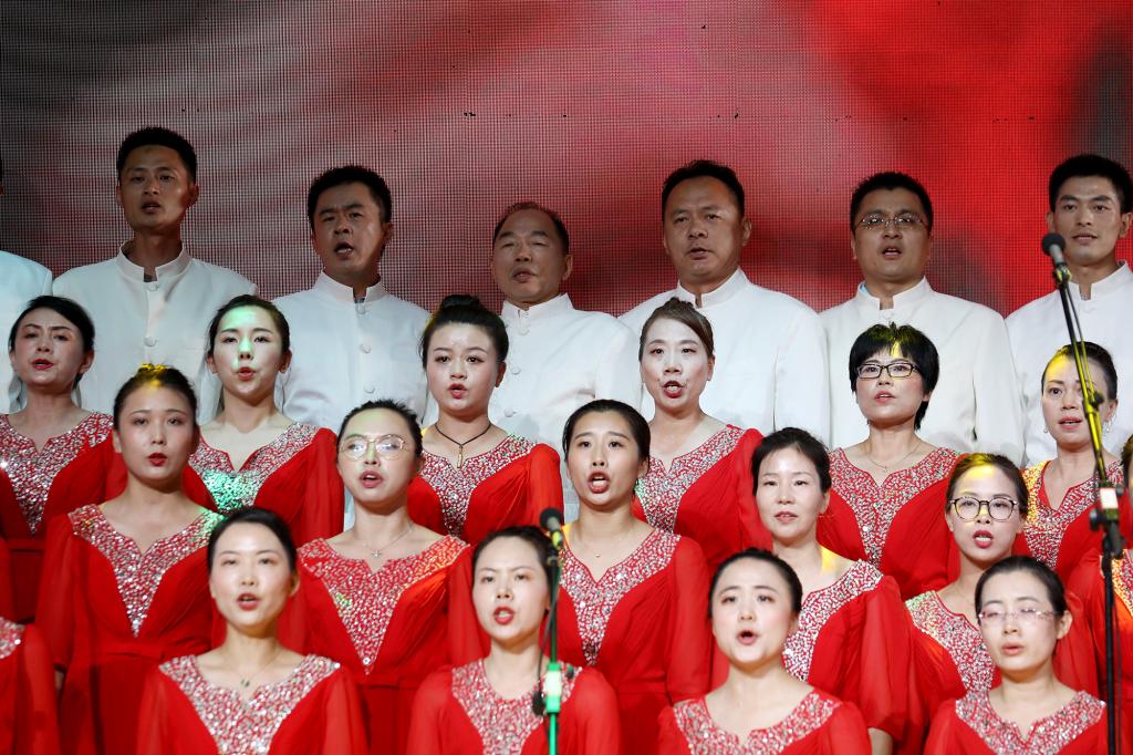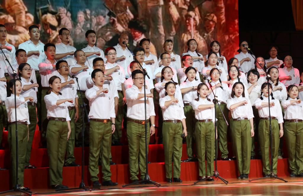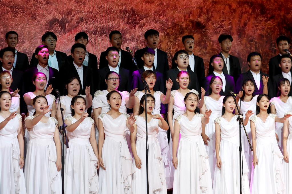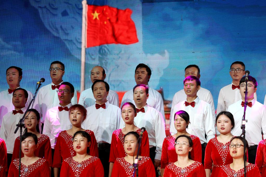 “五星红旗迎风飘扬,胜利歌声多么响亮……”大合唱比赛在全场同唱《歌唱祖国》的豪迈歌声中圆满落下帷幕。