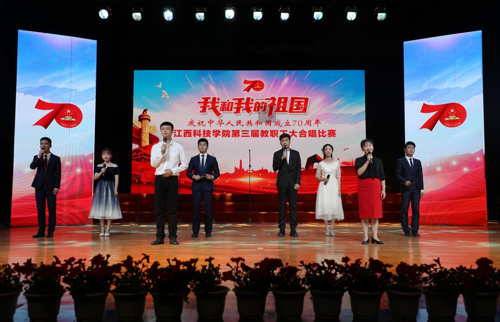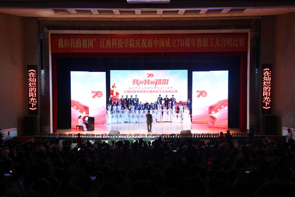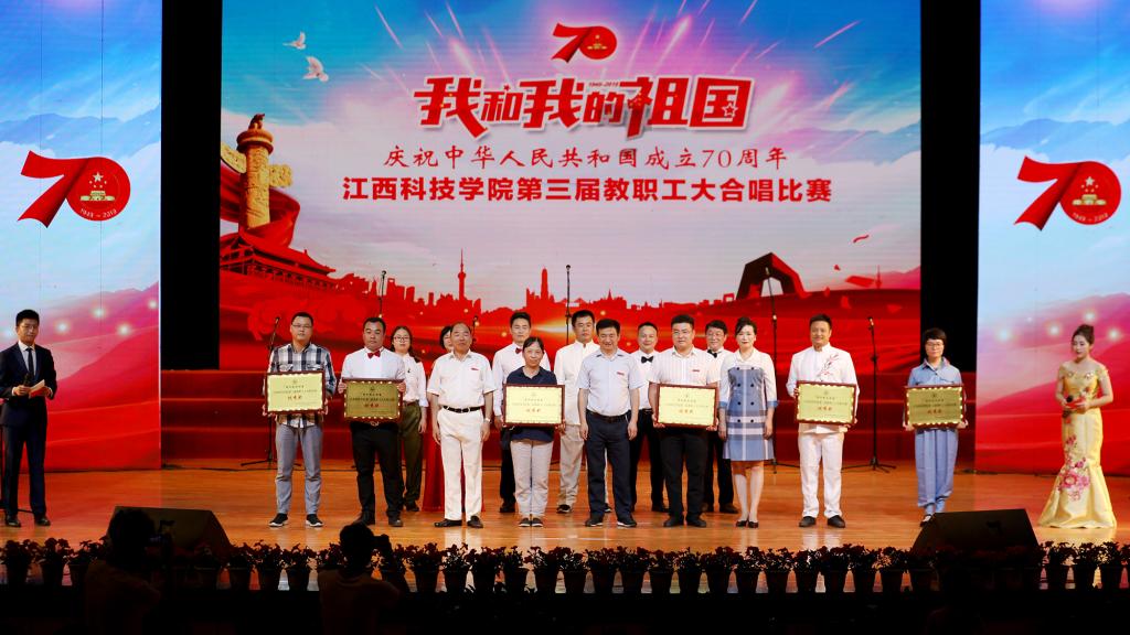 在庆祝新中国成立70周年、“不忘初心、牢记使命”主题教育深入开展之际,9月27日晚,“我和我的祖国”江西科技学院庆祝新中国成立70周年教职工大合唱比赛在蓝海大剧场隆重举行。董事长于果,校党委书记程样国,校长张海涛,“不忘初心、牢记使命”主题教育省委第十五巡回指导组副组长田红敏,副校长陈石俊、万哨凯、林素君、周万华,副书记、副校长黄辉玲,顾问熊爱民,和我校1500余名师生代表一同观看了比赛。学校千余名教职工组成14支合唱团,用歌声祝福祖国,用激情礼赞新时代!