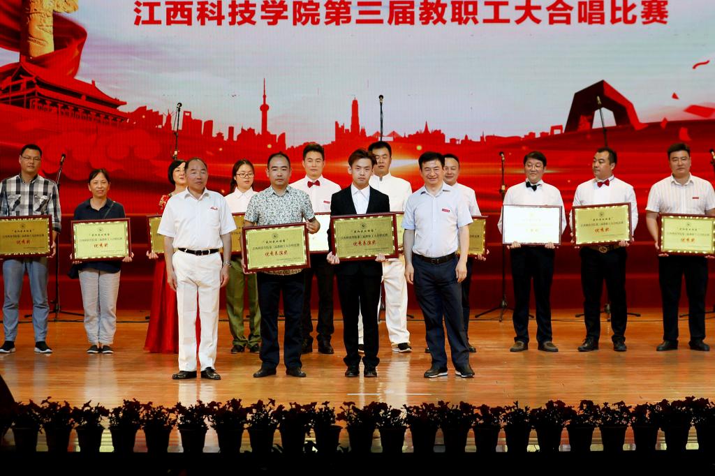 最终,音乐舞蹈学院表演合唱团、教职工表演合唱团荣获最佳表演奖;党政教辅后勤第一合唱团荣获一等奖;文化与传媒学院、教育学院合唱团,信息工程学院合唱团荣获二等奖;党政教辅后勤第二合唱团、机械工程学院合唱团、外国语学院合唱团荣获三等奖;艺术设计学院合唱团、党政教辅后勤第三合唱团、管理学院合唱团、财经学院合唱团、土木工程学院合唱团、医学院合唱团荣获优秀奖。于果董事长、程样国书记和张海涛校长为获奖合唱团颁发了奖牌,并合影留念。