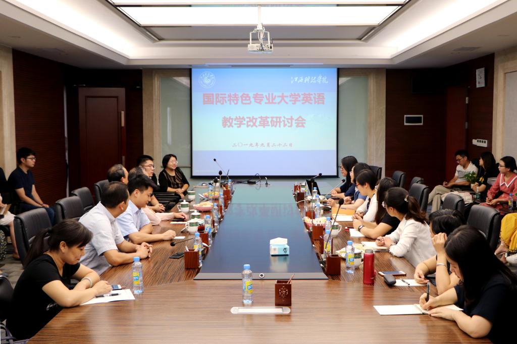 江科网讯(通讯员 胡杨 实习记者 陈展宏)9月23日,为进一步贯彻中教控股集团国际化教育改革的大方向,探索应用型课堂教学改革的有效途径,我校在行政南一楼第三会议室召开主题为“国际特色专业大学英语教学改革”研讨会。中教集团教育总监吴金舟、广东白云学院副校长沈根生、我校副校长万哨凯、复旦大学出版社总经理李华出席研讨会。我校及济南大学泉城学院的教师代表参加了研讨会。会议由我校外国语(国际教育)学院院长胥懋云主持。