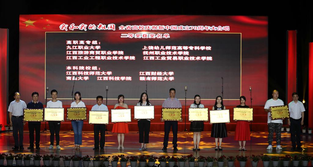 9月23日,大合唱比赛颁奖活动在我校蓝海大剧场隆重举行。当天的蓝海大剧场灯光璀璨,座无虚席。江西省教育厅副巡视员张爱萍,省委教育工委宣传部部长邓文君,江西科技学院董事长于果、党委书记程样国,江西教育电视台台长邱文元出席了颁奖活动并为获奖高校颁奖,1500余名师生参与了此次颁奖活动。我校在此次比赛中,荣获二等奖。