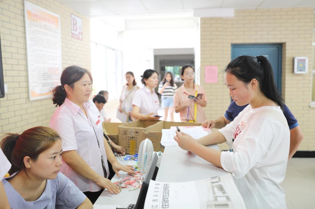 校园内呈现出生机勃勃的景象,洋溢着喜庆的氛围。志愿服务、答疑解惑、秩序维护、行李搬运、绿色通道……迎新工作人员和志愿者们个个精神饱满,在各自的岗位上为新生与家长们提供舒心、周到的服务。整个校园热闹非凡,处处是一张张热情的笑脸,一句句亲切的问候,一项项贴心的服务。学生宿舍楼内,宿管阿姨热情地迎接每位新同学的入住。