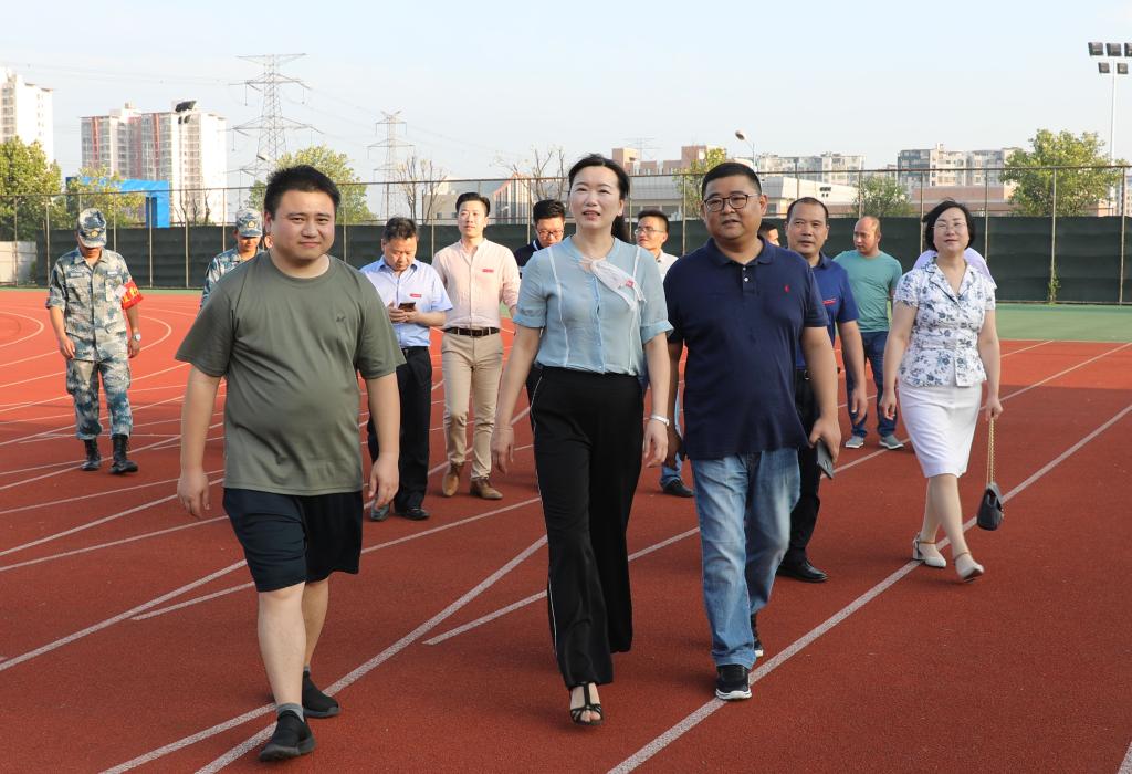 巡视中,张海涛亲切地向同学们挥手致意,并询问了在旁休息学生的身体状况,叮嘱他们注意劳逸结合,避免因天气炎热导致中暑。闵桂林与19级新生亲切交谈,勉励同学们要认真训练,以饱满的热情投入到大学生活中去。