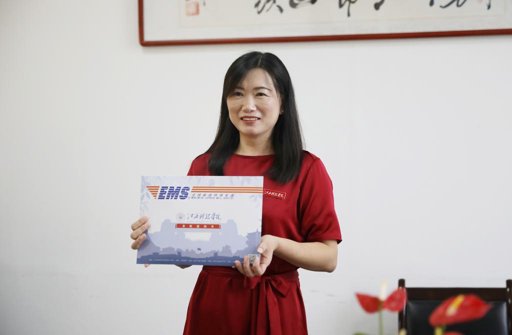 在首发通知书仪式上,张海涛从数千封通知书中亲自抽取了上海考生金婧灵、浙江考生游元富和江西考生高子淇三名幸运新生,亲手为他们的录取通知书盖签发校长章,在纪念封壳上盖下了金色校徽的火漆蜡印,并装入EMS信封。这标志着又一届满怀梦想的莘莘学子,将从五湖四海启程,汇聚江科开启人生新的追梦之旅。