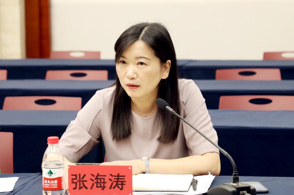 张海涛在会上讲话。她对学校多年来的教学督导工作给予了充分肯定,并对受聘的首批校级教学督导员表示祝贺。她说,聘任校级教学督导员是一项开拓性工作,是一种工作模式的转变,旨在使学校的教学督导实力进一步得到加强。这既是适应新阶段教育教学的需要,也是人才培养的要求。她强调,要牢固树立“成果导向、以学生为中心、持续改进”的教育教学理念,做好教学督导工作,全面提高学校教学工作水平和人才培养质量。最后,张海涛指出,受聘为校级教学督导员既是荣誉,又是责任。她要求各单位各部门对新聘任的校级教学督导员的工作多支持、多配合、多帮助。同时,她对校级教学督导员提出了三点明确要求:第一,忠于职守,勇于做思想标杆,做年轻老师思想上的引路人;第二,勤于精业,善于做业务标兵,做教学业务上的领跑人;第三,严于律己,敢于做行为楷模,做教育教学事业上的守夜人。