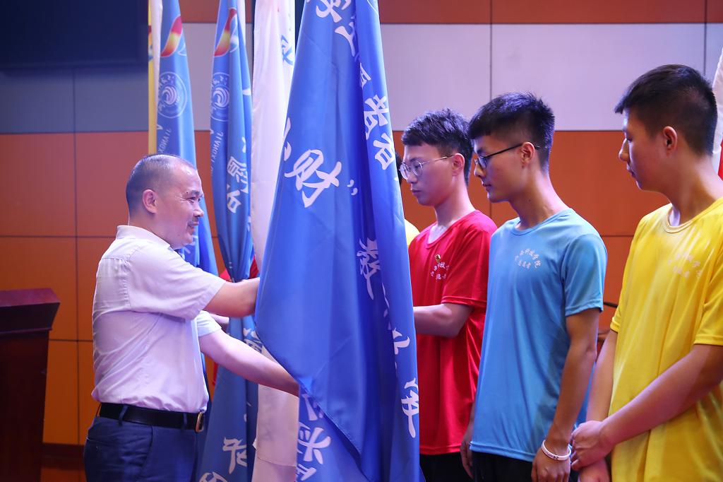 闵桂林为暑期“三下乡”团队授旗并讲话。他代表学校党委、行政,对即将奔赴各地参加今年暑期“三下乡”社会实践活动的老师和同学致以亲切的问候和美好的祝愿。他说,暑期“三下乡”社会实践的时间可能是短暂的,但在社会实践中建立起与基层群众的深厚感情、以及活动对大家世界观、人生观、价值观的影响将是长期的、永恒的。他对参加此次社会实践活动的同学们提四点希望:一是在实践中强化理想信念,践行青春使命;二是在实践中练就过硬本领,提升综合素质;三是在实践中树牢服务理念,展现青春风采;四是在实践中明确工作导向,凝聚特色成果。他希望全体师生在实践活动中发扬“自强不息,求真务实”的江科精神,积极投身在服务社会和服务人民的洪流中,绽放自己的青春风采。把此次社会实践活动定格为一次经典,向学校和社会交出一份满意的答卷。