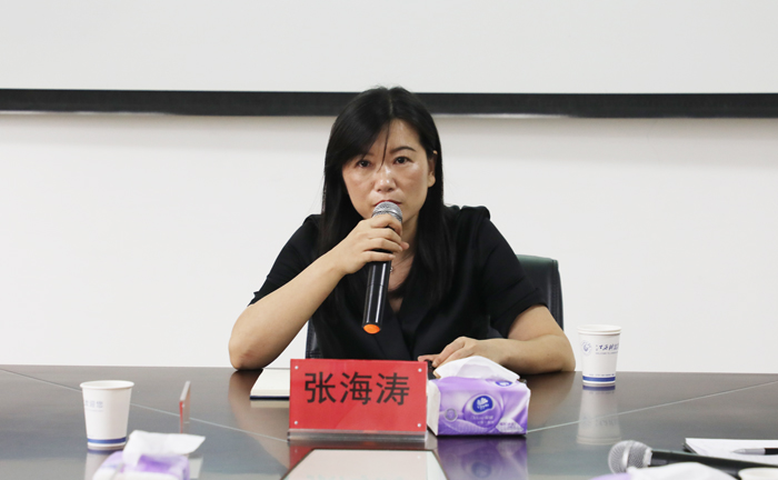 张海涛在讲话中阐述了我校二级学院调整重组的实施背景、实施意义,详细解读了我校二级学院的主要架构。她指出,为充分整合资源,优化配置,学校根据专业所属学科门类,专业布局及发展规划,对现有的二级学院进行了重组。调整之后,原文化与传媒学院拆分成现文化与传媒学院和教育学院。学校各职能部门要积极配合,自觉统一到学校的决定上来,确保重组后各学院的平稳过渡。最后,张海涛强调,新任文化与传媒学院院长贾翔羽和教育学院院长(原文化与传媒学院院长)李玮都是年轻院长,年轻人有激情、有活力、有干劲、有想法。她鼓励二位要有干一番事业的信心和决心,不辜负学校的厚望,带领学院更快、更好地发展。