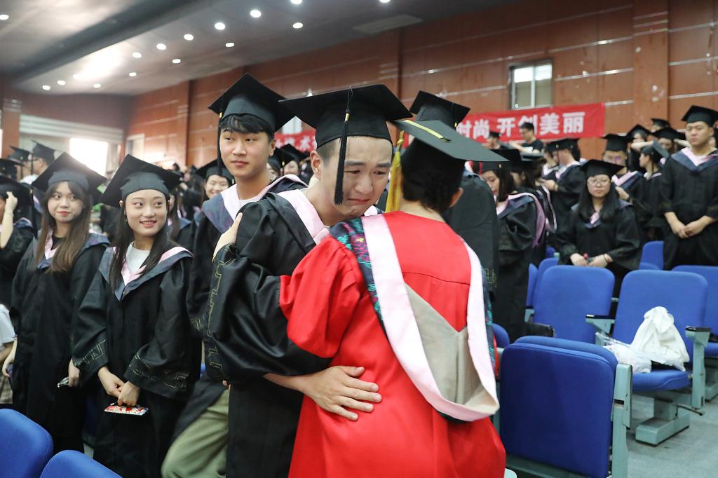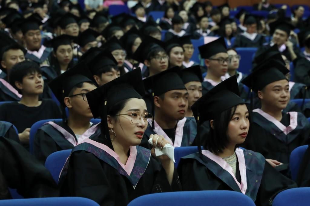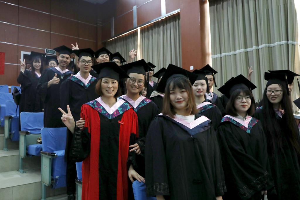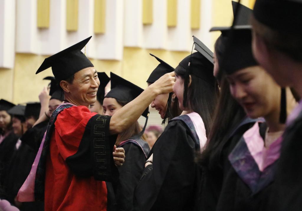 “相聚在同一片蓝天下,我们来自四面八方……”各学院毕业典礼上,毕业生们在毕业前最后一次齐唱校歌。在庄严隆重的氛围中,各学位委员为毕业生拨穗、正冠,授予学位,并与大家合影留念。