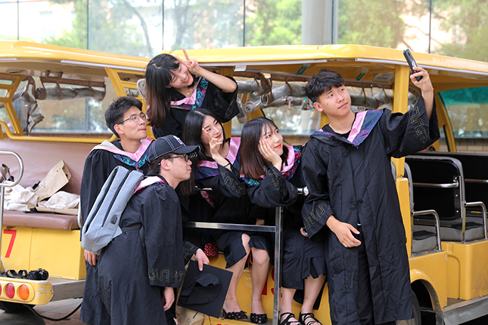静水无声悄然去,此情可待成追忆。曾经图书馆里的灯火通明,思贤桥上的脚步匆匆,都是你们的青春留影。只是,小黄车再也等不到你们这班乘客;蓝天阁下再也见不到你们的身影。但无论时光流转、岁月变迁,你们永远是母校最深的牵挂!