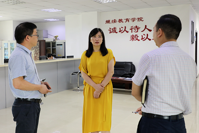 江科网讯(记者 何强江)6月21日上午,校长张海涛,副校长万哨凯,副书记、副校长黄辉玲一行深入继续教育学院调研指导工作。