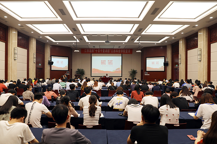 江科网讯(记者 何强江)5月23日,我校在行政南楼第一会议室举行2019年江西高校“十百千宣讲团”校园宣讲活动。江西省高校思想政治理论课特聘教授、我校党委副书记肖イ毛根以《政治建设 “两个维护”;铸魂育人 立德树人;精神事业 灵魂创造——学习习近平若干重要思想》为题作宣讲报告。