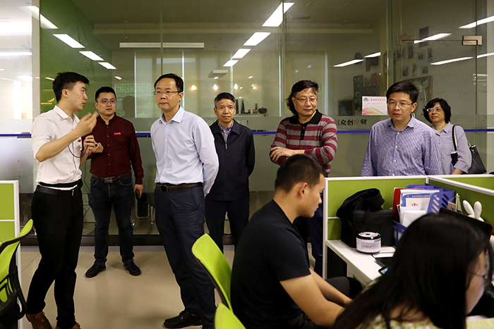 江科网讯(记者 何强江)5月15日下午,省发改委党组成员、省政府投资项目评审中心主任李庆红,省发改委高技术产业处处长樊千根,省发改委财政金融处处长余世华等一行4人来校参观考察。在陈石俊副校长、熊爱民顾问的陪同下,李庆红一行实地参观考察了红绿蓝众创空间、护理学院和协同创新中心。
