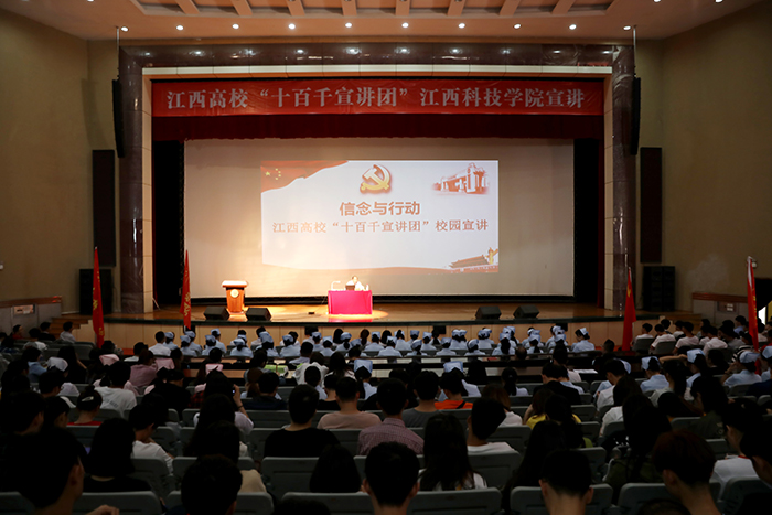 江科网讯(记者 何强江)5月10日下午,蓝海大剧场内气氛热烈,我校江西省“十百千宣讲团”校园宣讲活动现场座无虚席。校党委书记、督导专员程样国教授以“信念与行动”为主题,为各学院党总支书记、党务干事及第三十七期入党积极分子培训班学员共计1400余人上了一堂生动的党课。