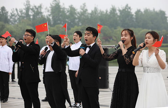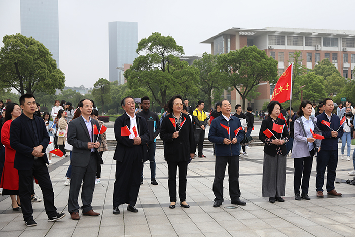 根,副校长林素君,校党委副书记、副校长黄辉玲、万哨凯,副校长马红坤,顾问熊爱民与数百名师生一道诵读经典、歌唱祖国。
