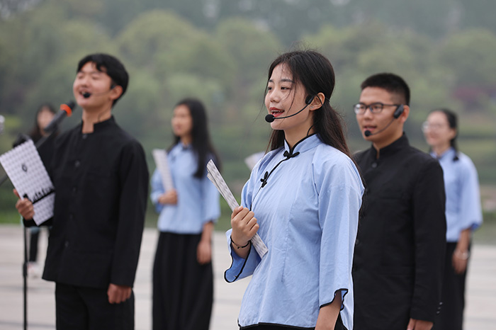 《沁园春·长沙》《沁园春·雪》《西江月·井冈山》《七律·长征》《七律·人民解放军占领南京》《七律·洪都》《水调歌头·重上井冈山》等七篇毛泽东诗词连诵,带领师生重温老一辈无产阶级革命家的崇高的人生理想和坚定的革命信仰。