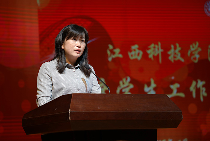 张海涛在讲话中肯定了2018年度学校各项学生工作取得的成果,对获表彰的集体和个人表示祝贺,对辛勤工作的广大教职工和学生干部表示感谢。对2019年学生工作,她提出了三点要求。一是加强队伍建设,努力打造“职业化、专业化”辅导员队伍。二是加大学生管理工作研究力度,努力为学生成长成才提供优质服务。三是提升学生事务服务水平,建设平安和谐的育人环境。她勉励江科学子,以优秀学生为榜样,积极进取,同时希望受表彰的集体和个人,不忘初心,砥砺前行,为把学校建设成为特色鲜明、国内领先的应用型民办本科高校贡献力量。