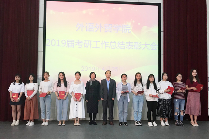 江科网讯(实习记者 陈展宏 通讯员 吴文凤)4月25日下午,外语外贸学院2019届考研工作总结表彰大会在学术报告B厅举行。副校长马红坤出席并为受表彰的学生颁发荣誉证书。
