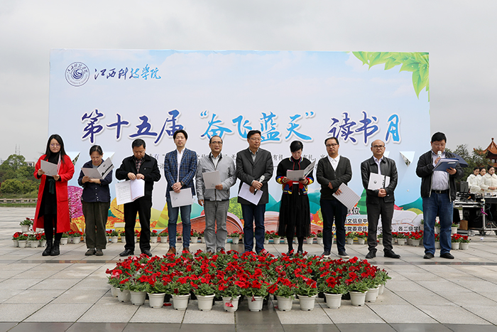 江科网讯(记者 李倩 何强江)4月12日,第十五届江西科技学院“奋飞蓝天”读书月活动开幕式在临水广场举行。陈石俊副校长出席开幕式并致辞。