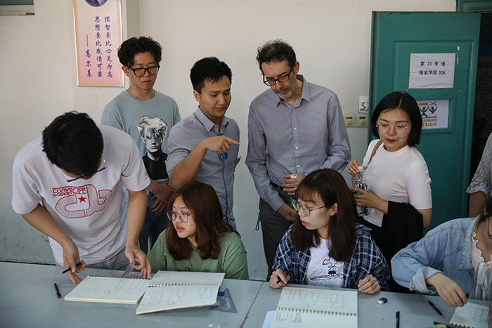 John Crossley教授一行在外语外贸学院(国际教育学院)院长胥懋云和国际教育项目组主任崔丹莉陪同下,前往音乐舞蹈学院和服装学院参观考察,并与学生热情交流,勉励学生认真学习。John Crossley 教授还慰问了我校艺术学院和服装学院中外合作班教学任务的教师,并为他们进行了培训和指导。