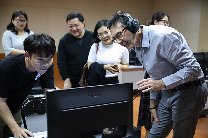 John Crossley教授在行政南楼第一会议室,为音乐学院、服装学院的部分学生作了精彩学术讲座。他在现场为大家演示了声音成像,并鼓励同学们积极参加2019年英国德比大学暑期微留学活动,开拓国际视野。