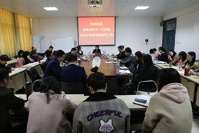 校领导在听取该学院院长李玮就学院学科建设、教学管理、科学研究、师资队伍、学生管理以及近期工作开展情况、学院发展规划等方面的工作汇报后,充分肯定了文化与传媒学院的发展现状及取得的成绩。