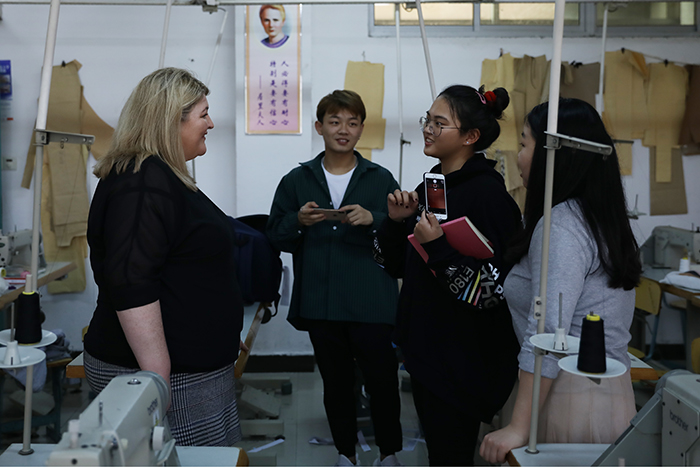 下午,Nicola和Ula在胥懋云和外语外贸(国际教育)学院国际教育项目组主任崔丹莉陪同下,到艺术设计学院和服装学院看望了中外合作班师生,并与大家热情交流、合影留念。