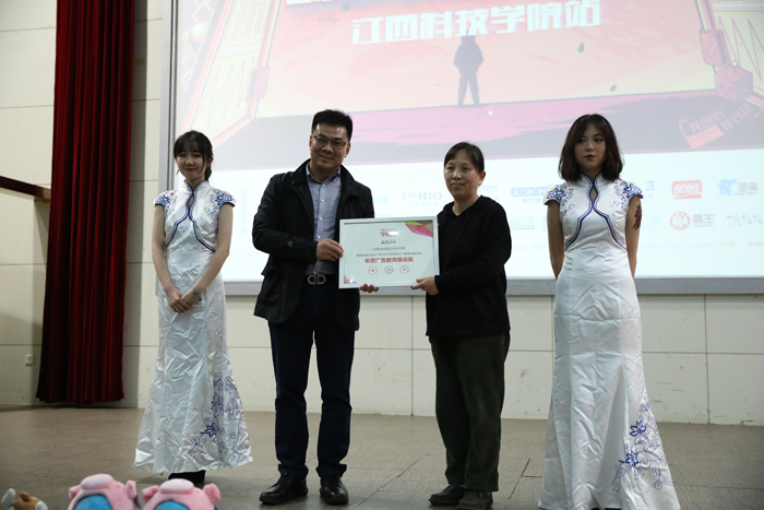 广告人学院副院长高鹏铭对本届比赛作了详细介绍。组委会授予我校“年度广告教育推动奖”。艺术设计学院院长汪静代表学校接受奖牌。