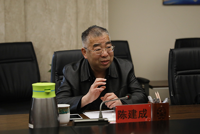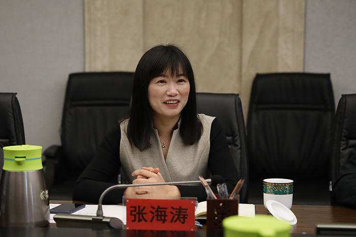 张海涛在致辞中,对陈建成一行的到来表示热烈欢迎。她希望陈建成一行能为学校的建设和发展多提宝贵意见及建议。在科研管理、学科建设、师生培养等方面加强沟通交流,寻求合作契机,拓宽合作领域,促进学校内涵建设,提升学校办学水平。