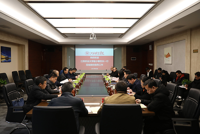 江科网讯(记者 李倩 实习记者 徐铭娅)应张海涛校长邀请,3月4日下午,江西农业大学校长赵小敏率副校长黄英金、曾志将,研究生院院长蔡海生、工学院院长颜玄州、经管学院院长翁贞林、计信学院院长王映龙等一行七人来我校交流指导联合培养硕士研究生工作。