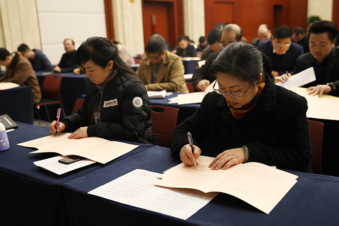 校属各单位党政一把手,各二级综治责任单位综治干事及校综治办成员参加会议。会上,校属各二级单位签订了《江西科技学院2019年度校内综治、安全稳定工作责任书》、《江西科技学院2019年度消防安全责任书》及《江西科技学院2019年系统(网站)信息安全责任书》。