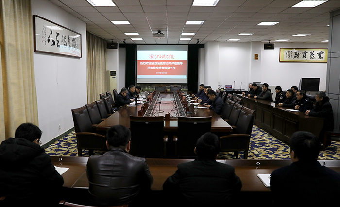 江科网讯(记者 何强江)1月16日下午,以省教育厅副厅长叶宝凌为组长,鹰潭市综治办副主任夏卫东,省教育厅稳定处(信访处)副处长伍斌斌为成员的省综治考评组来校,对我校2018年综治工作进行检查考评。校党委书记程样国、副校长周万华在行政北一楼会议室与考评组座谈,校综治办,各学院、相关部门负责人和综治干事参会。