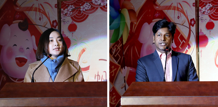 教师代表祝帆、外籍教师代表Vijay Shankar Chand、留学生代表高思博、中国学生代表刘思源分别发言。