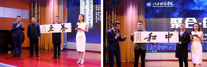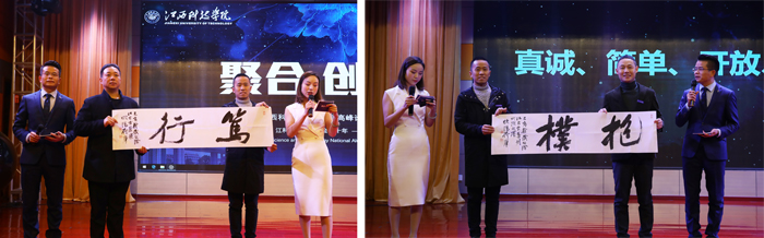 论坛上还举行了江西校友会助学金启动仪式。2000届校友欧阳荷庚在陈锦云、杨友喜、罗淇和江期胜等人主题演讲结束后,分别为他们赠送了“养正”“中和”“笃行”“抱樸”四幅书法作品。