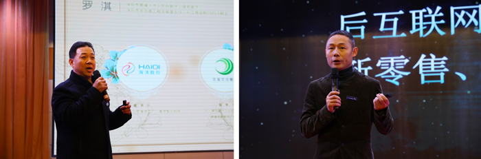 上海校友会副秘书长、上海搜星网络科技有限公司总经理陈锦云,宁波校友会常务副会长、宁波正航智能系统有限公司总经理杨友喜,深圳校友会会长、海淇集团董事长罗淇,江西校友会会长、魅丝蔻集团董事长江期胜等四位校友站在各自发展领域,结合新时代下创新创业,围绕着“聚合·创变”展开演讲。