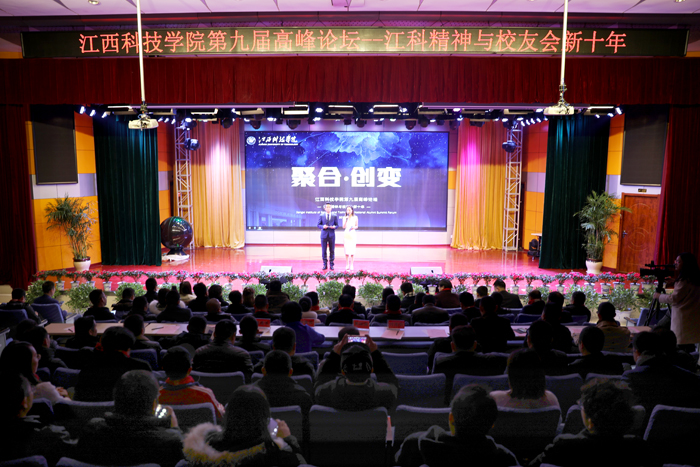 江科网讯(记者 何强江)1月3日上午,江西科技学院校友会第九届高峰论坛在报告C厅举行。于果董事长、林素君副校长出席。本届论坛由江西校友分会承办,主题是“聚合·创变——江科精神与校友会新十年”。来自全国各地的校友代表近200人参加论坛。