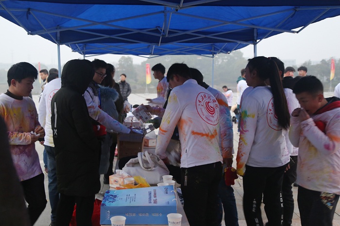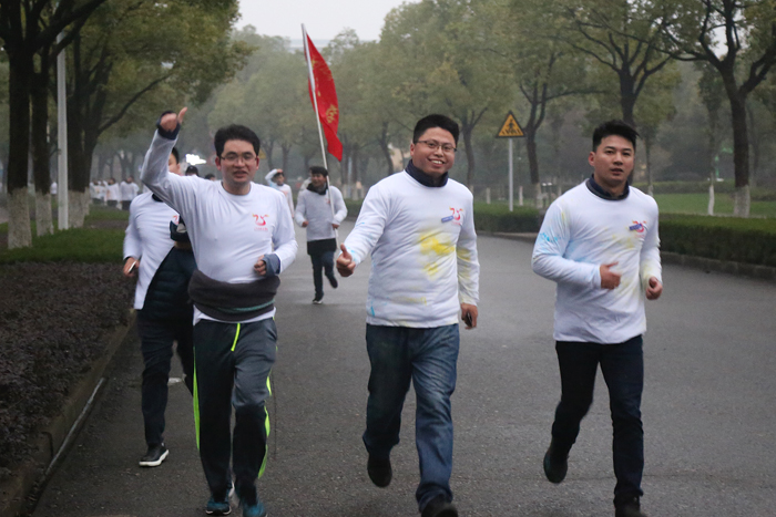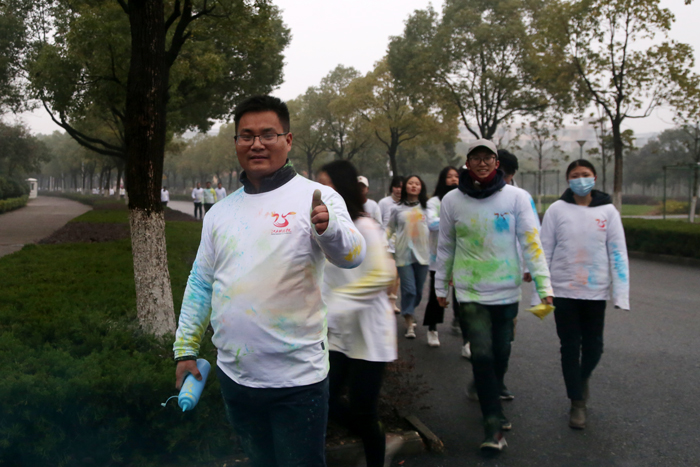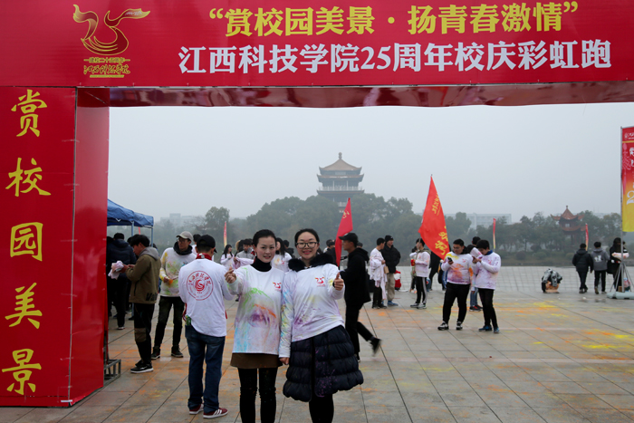 “彩虹跑是校庆活动里最令人开心、最激发热情、最展现活力的活动之一。在冷冽的冬日清晨,江科师生带着灿烂的笑容,怀着对江科25周年校庆最衷心的祝福,一起在校园美景中努力奔跑。”土木工程学院团委书记孙鹏翔说。2017级土木工程学院的王鑫安参加完彩虹跑后深有感触:“回到终点时,白色的文化衫已经染上了各种色彩,宛若彩虹。我们挥洒青春汗水,文化衫上斑斓的色彩为我校25周年校庆留下五彩的烙印。”