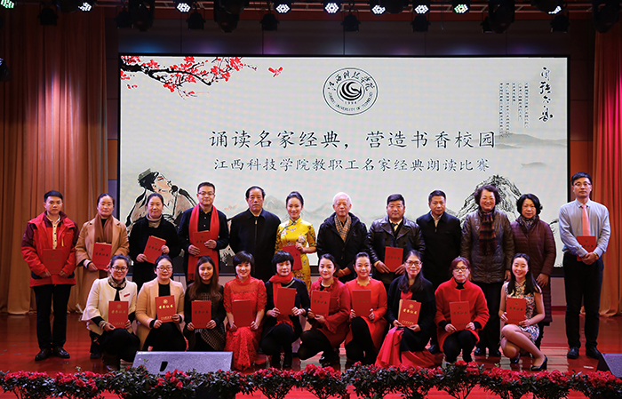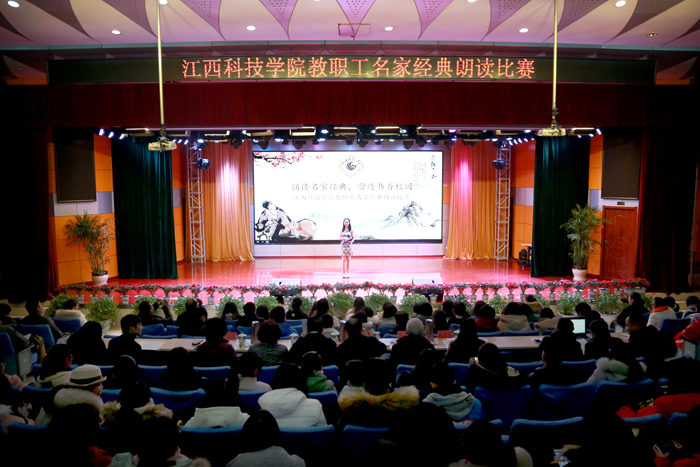 江科网讯(记者 吴寒 何强江)瑞雪迎校庆,书香满蓝园。为庆祝建校25周年,展现我校教职员工的良好精神风貌,1月2日下午,由江西科技学院工会、江西科技学院教师发展中心联合主办的“诵读名家经典,营造书香校园——教职工名家经典朗读比赛”在报告C厅举行。校党委副书记肖亻毛根,副校长、校工会主席林素君,副校长周万华,总督学王占铭,顾问熊爱民,校党委宣传部部长黄语素应邀担任评委。来自各分工会的17组教职工代表参加了比赛。