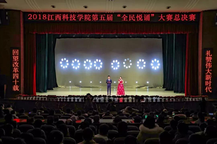 江科网讯(通讯员 巫璇宇 徐铭娅 陈枫霓)12月28日下午,由校党委宣传部主办、见微知著大学生网络文化工作室协办的“回望改革四十载 礼赞伟大新时代”2018年江西科技学院第五届“全民悦诵”总决赛在沙龙舞台举行。